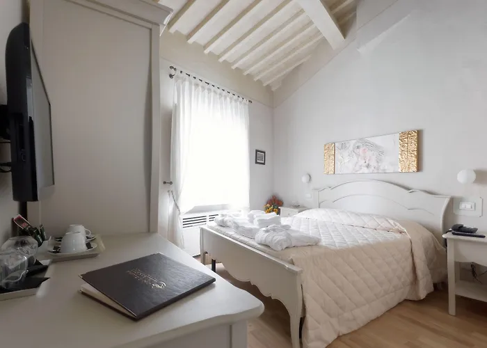 Hôtel fantastique avec des chambres aérées et bien rangées et une salle de bain privée. Le personnel est super gentil, il fournit des services géniaux. Il y a des lits très confortables, et un coffre-fort, une TV à écran plat avec des chaînes satellite et un pupitre d'écriture dans la chambre. Un emplacement génial et cool si proche de tout avec une vue fabuleuse sur le tour. À 200 mètres de là se trouve Ristorante Enoteca il Toscano, vous pouvez y manger. Vous avez rendu notre séjour formidable!